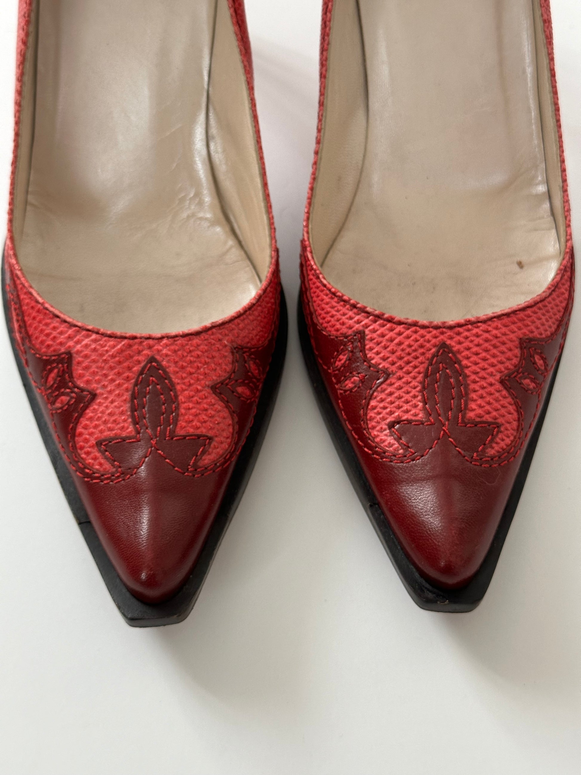 -red and coral cowboy style heel
